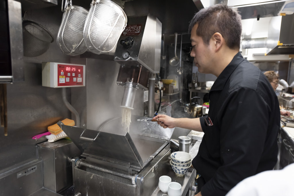 職人でこなしていた、複雑なメニューや製麺を機器の利用でアルバイトさん中心で営業可能。